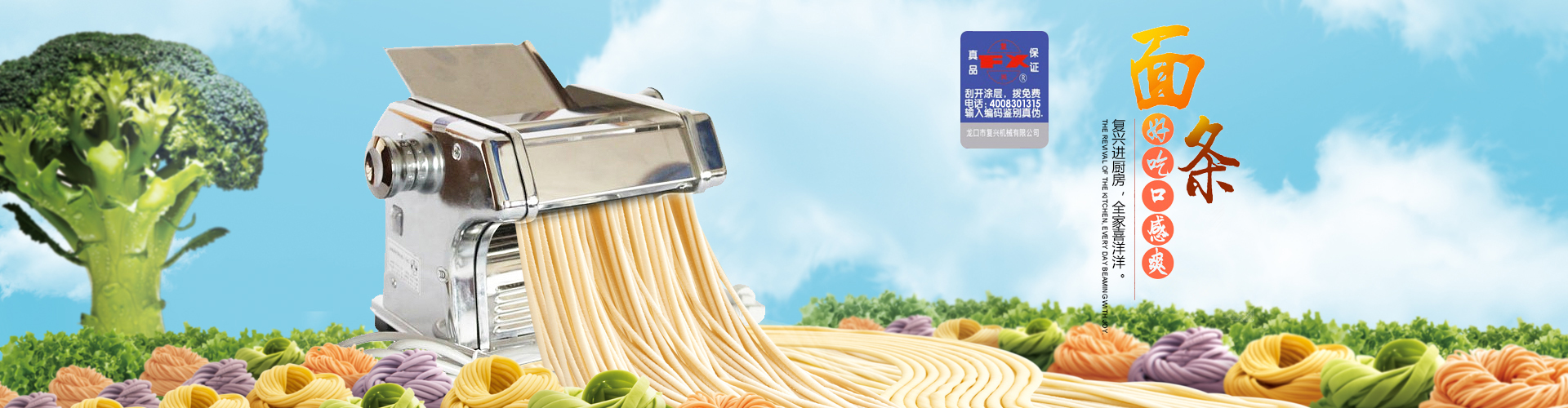 龙口复兴机械有限公司始建于1986年,公司占地面积3.5万平方米,建筑面积2.5万平方米,职工720人,各类工程技术人员168人。拥有总资产8000万元,各种先进配套设备400台(套)。年产“复兴牌”手动面条机、电动面条机、饸饹面机等系列炊事用具200万台(个)。产品畅销全国二十多个省市、自治区,并部分出口美国,东南亚等地。其中主产品面条机年产80万台,占国内同类产品市场的70%以上,被山东省命名为“质量免检产品”,并荣获“乌兰巴托国际博览会金奖”“中国公认名 产品”、“全国亿万民众喜爱的家用产品满意奖”等称号,顺利通过了全国28个协作城市产品质量互认。电动面条机填补了国内空白,获国家专利金奖,被国家经贸委授予“一九九七年度国家新产品”荣誉称号。
